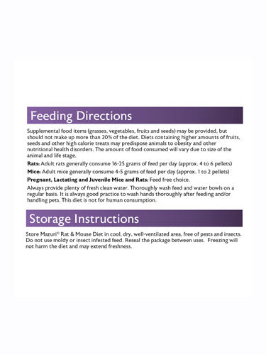 Storage Conditions For best results, ensure polybag seal is fully closed during storage, or store contents of open paper sack in container with sealing lid. Diets are packaged in sealed containers under nitrogen to ensure optimal freshness. Store in a cool (75o F or colder), dry (approximately 50% RH) location. Freezing will not harm the diet and may extend freshness. Adhere to the “Best if used by” date or use within 1 year of bag manufacturing.